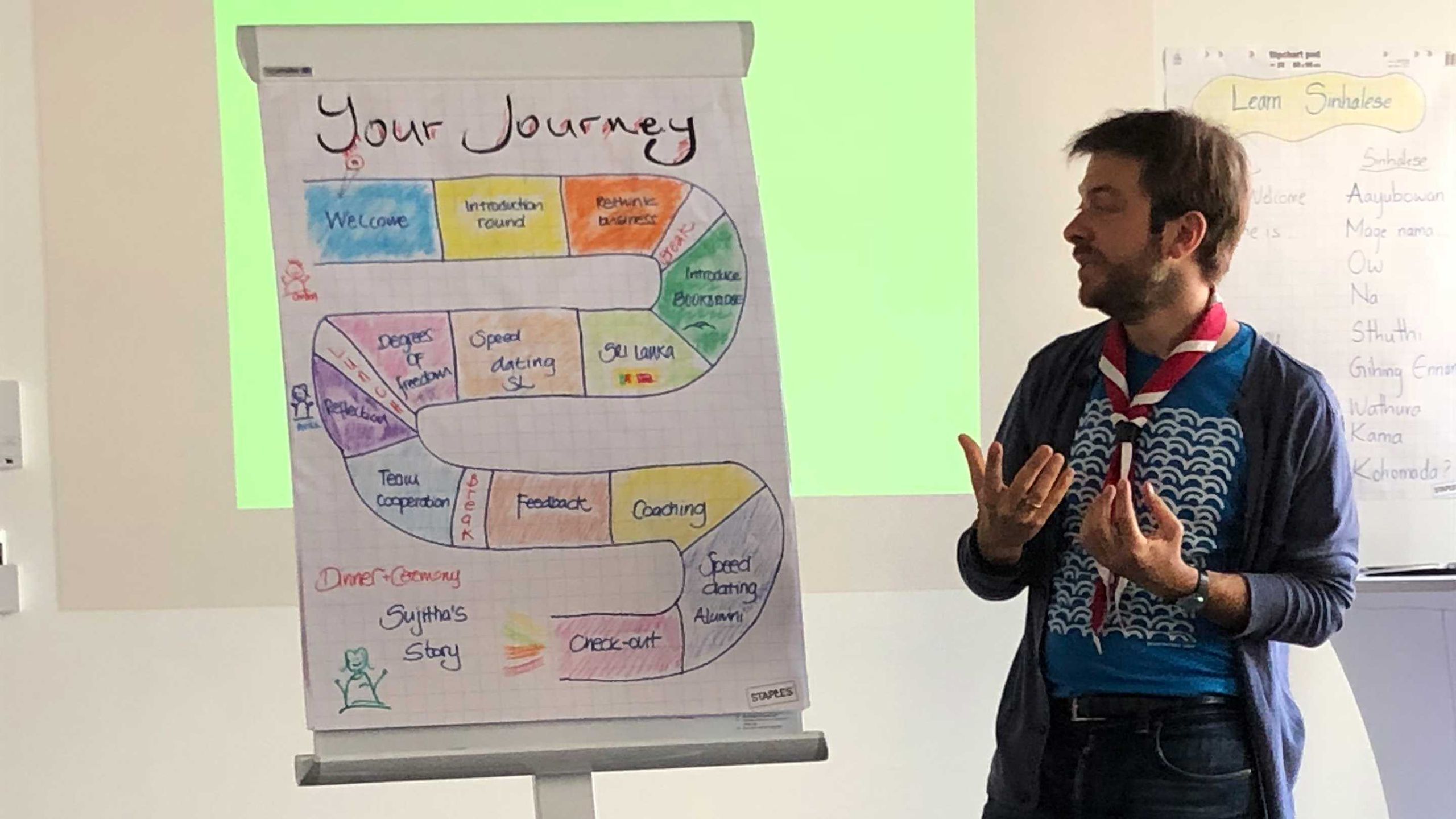 During the last two days of module 1, we finally learned more about our project, and got to know our team (especially the participants located in Sri Lanka), a potential investor and our coaches. Dr. Carsten Rübsaamen, founder and CEO of BOOKBRIDGE, passionately introduced us to his Social Enterprise as well as to non-profit companies in general, using some success stories as examples. Having started with a large delivery of books to Mongolia and the following construction of a local learning-area, there are now 28 learning centers in Mongolia, Cambodia, Sri Lanka and South Africa.